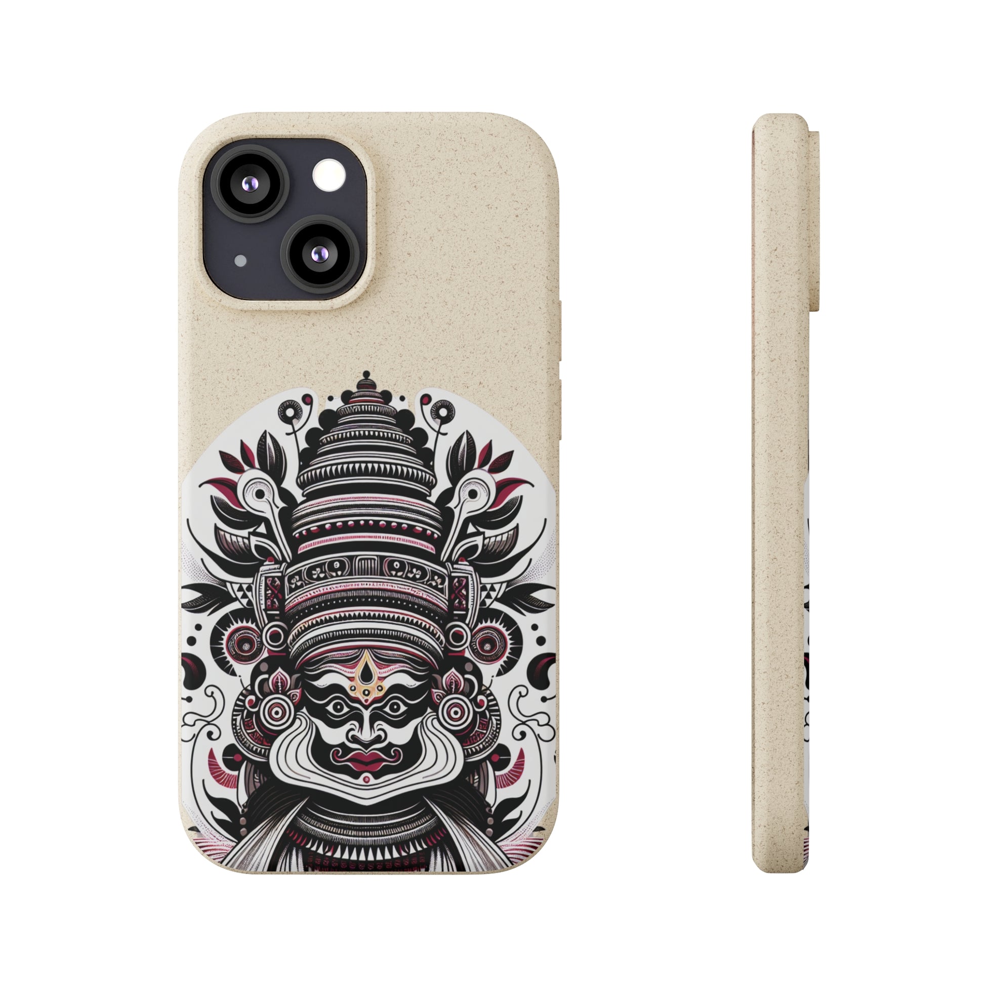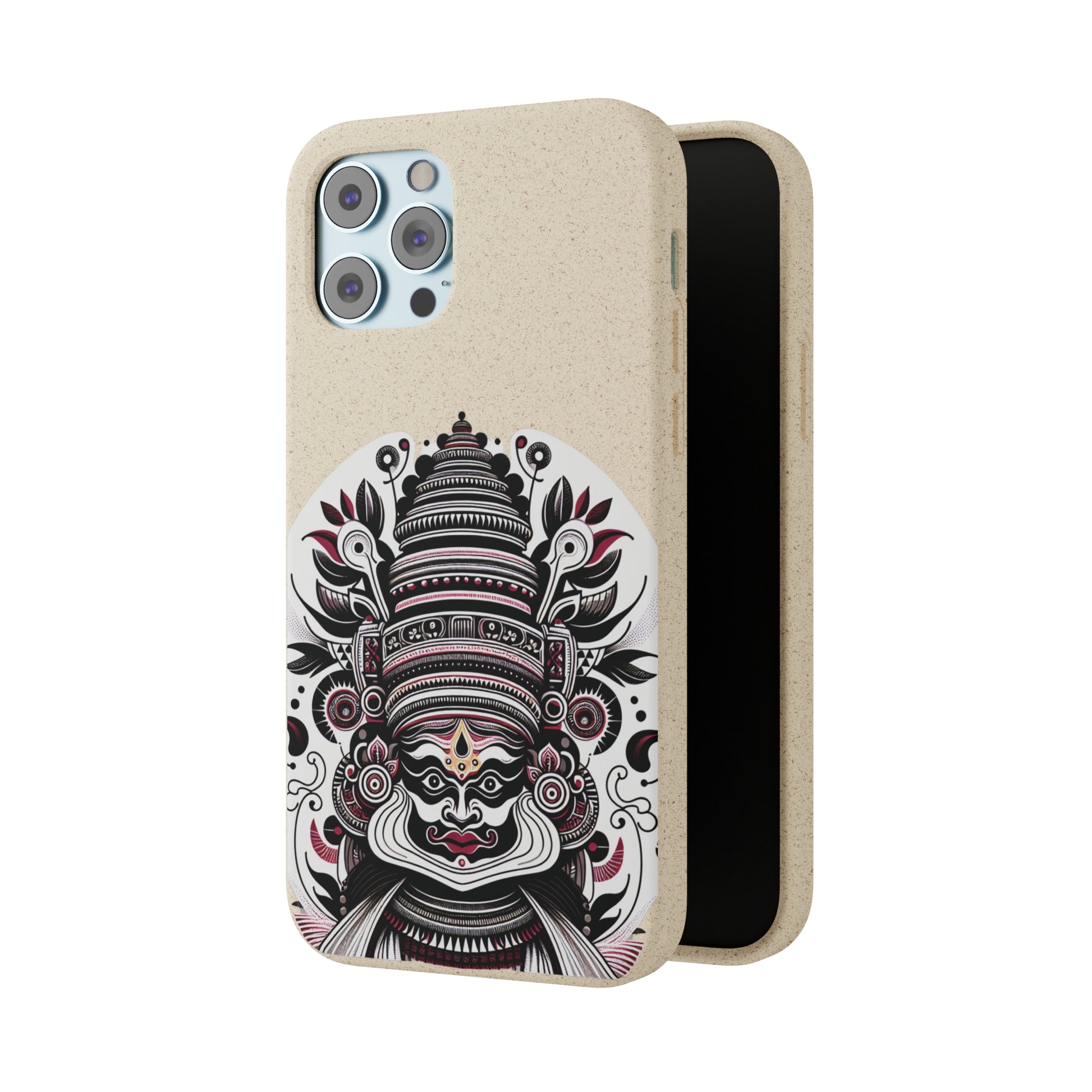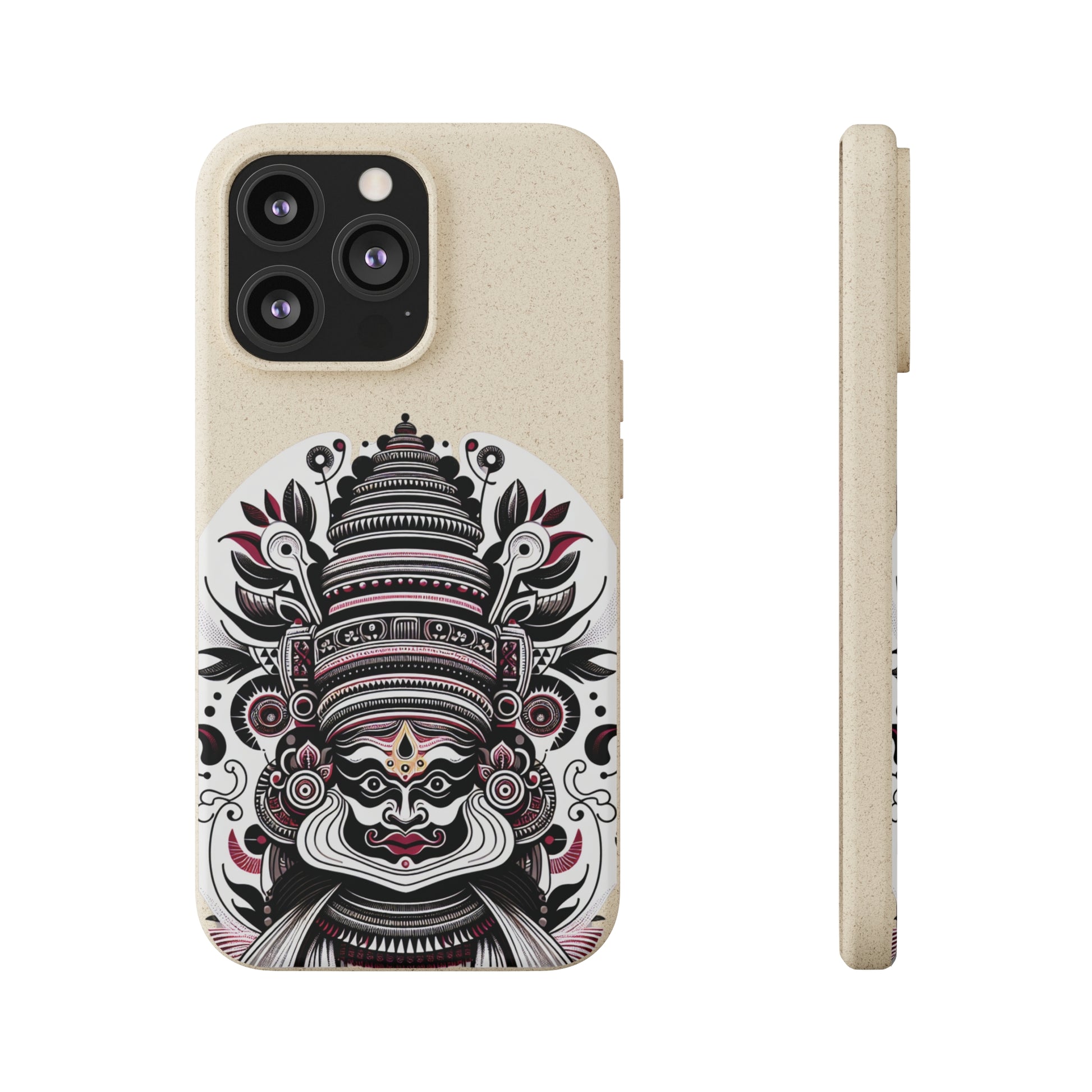 Eco-friendly Biodegradable Phone Cases featuring an intricate portrayal of a Kathakali dancer, showcasing the elaborate face makeup and costume of this classical Indian dance form. This design captures the essence of Kerala's traditional theatre. Perfect for those who appreciate sustainable products and Indian culture. Ideal for gifting during Earth Day, International Dance Day, or cultural celebrations.