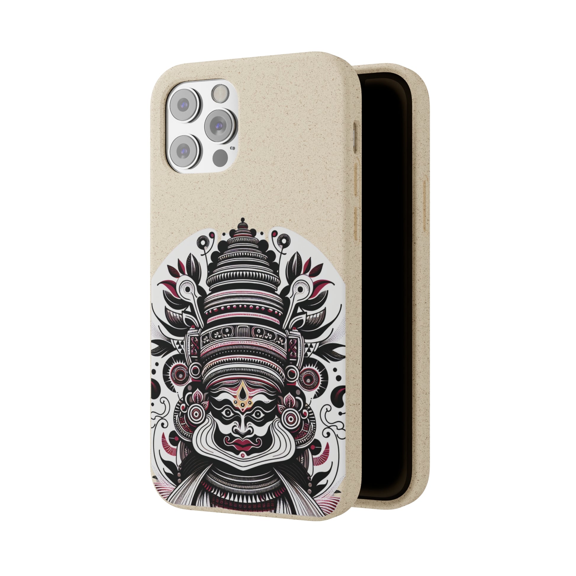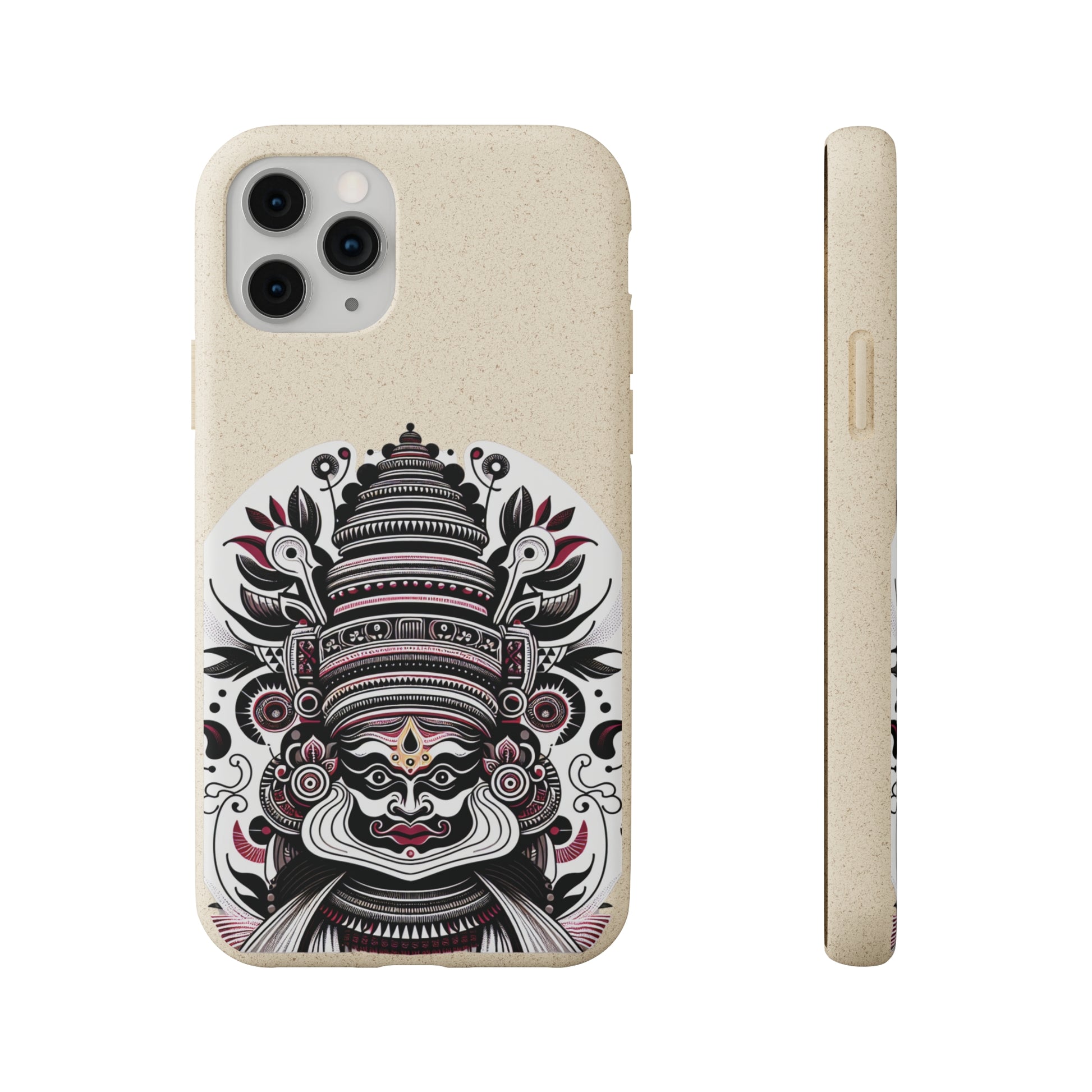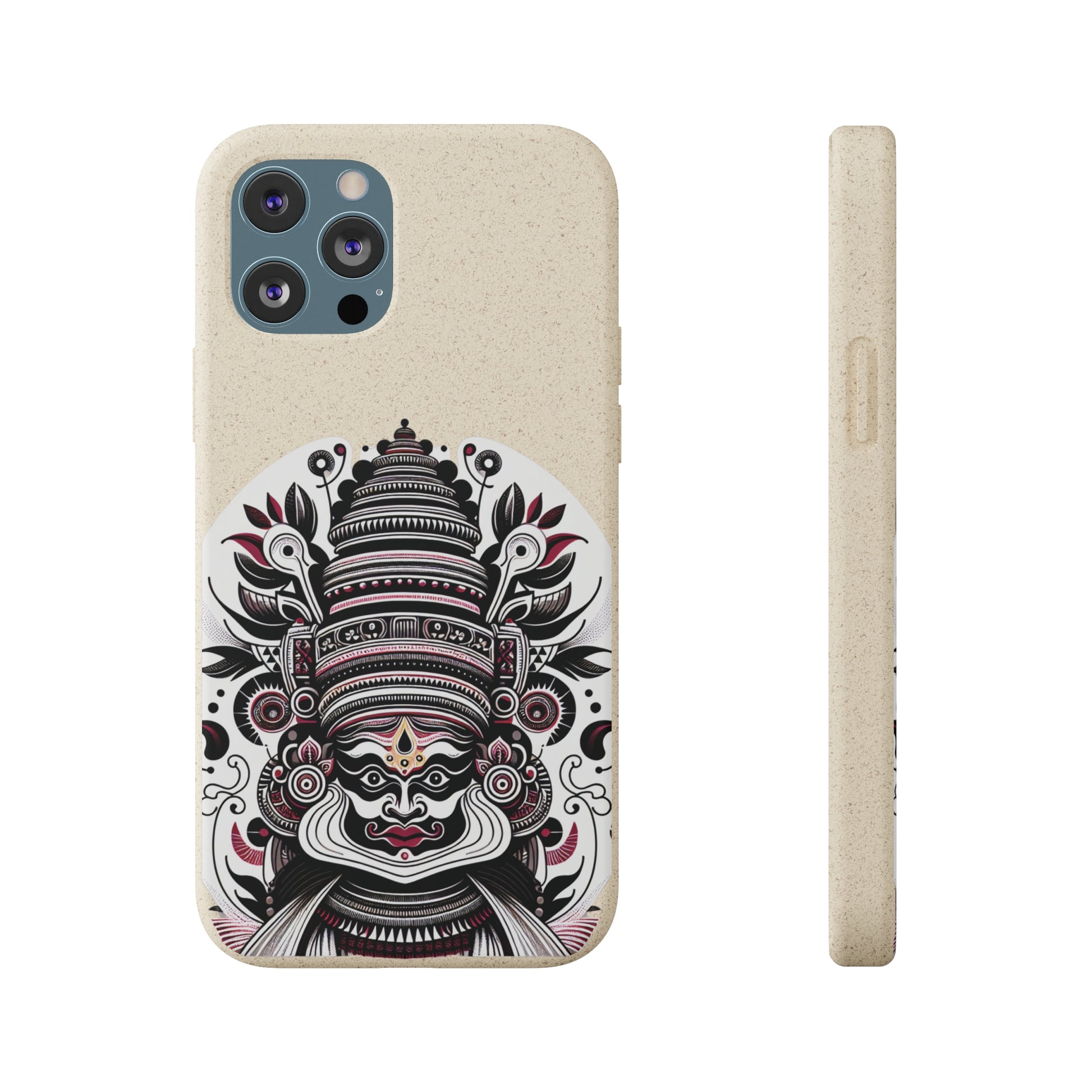 Eco-friendly Biodegradable Phone Cases featuring an intricate portrayal of a Kathakali dancer, showcasing the elaborate face makeup and costume of this classical Indian dance form. This design captures the essence of Kerala's traditional theatre. Perfect for those who appreciate sustainable products and Indian culture. Ideal for gifting during Earth Day, International Dance Day, or cultural celebrations.