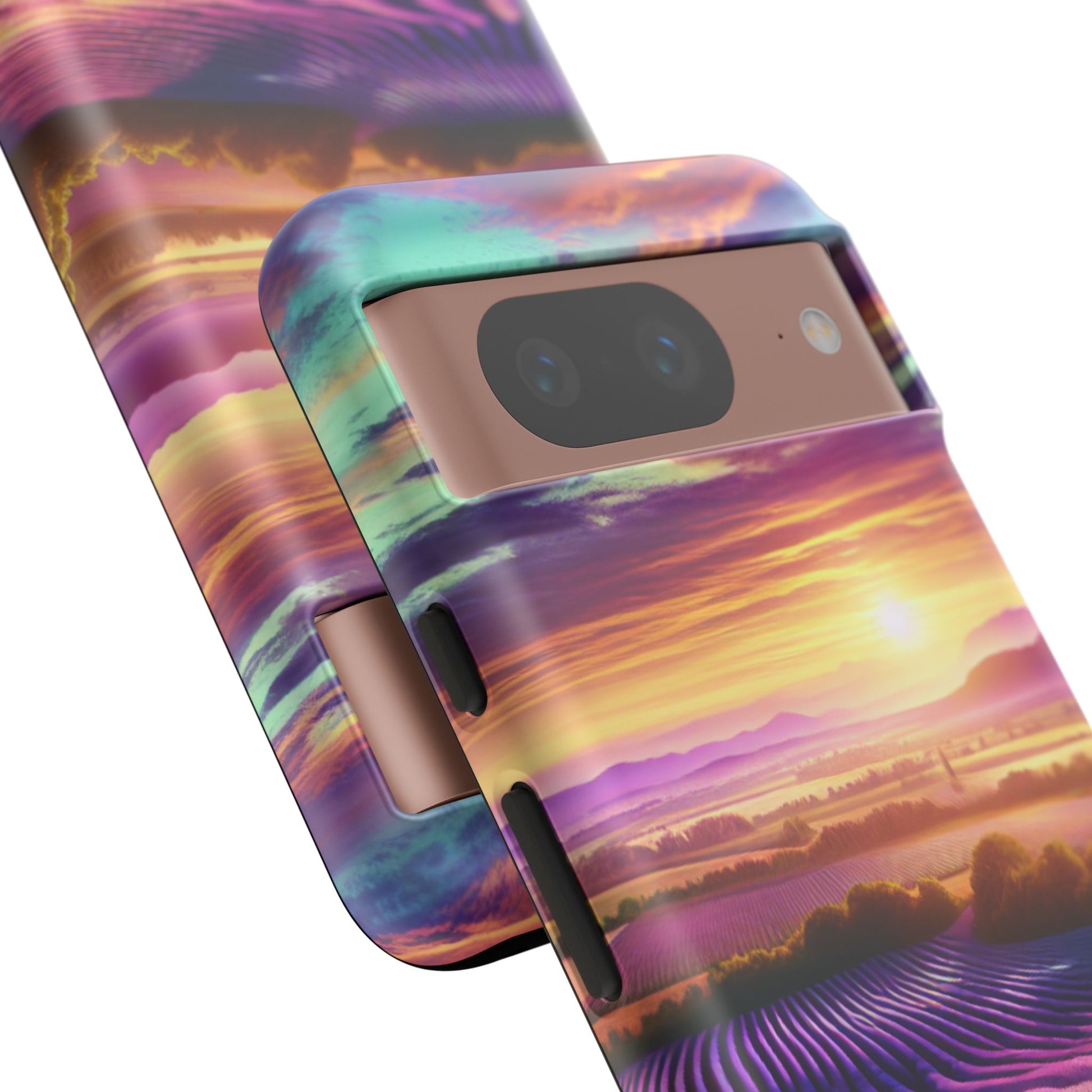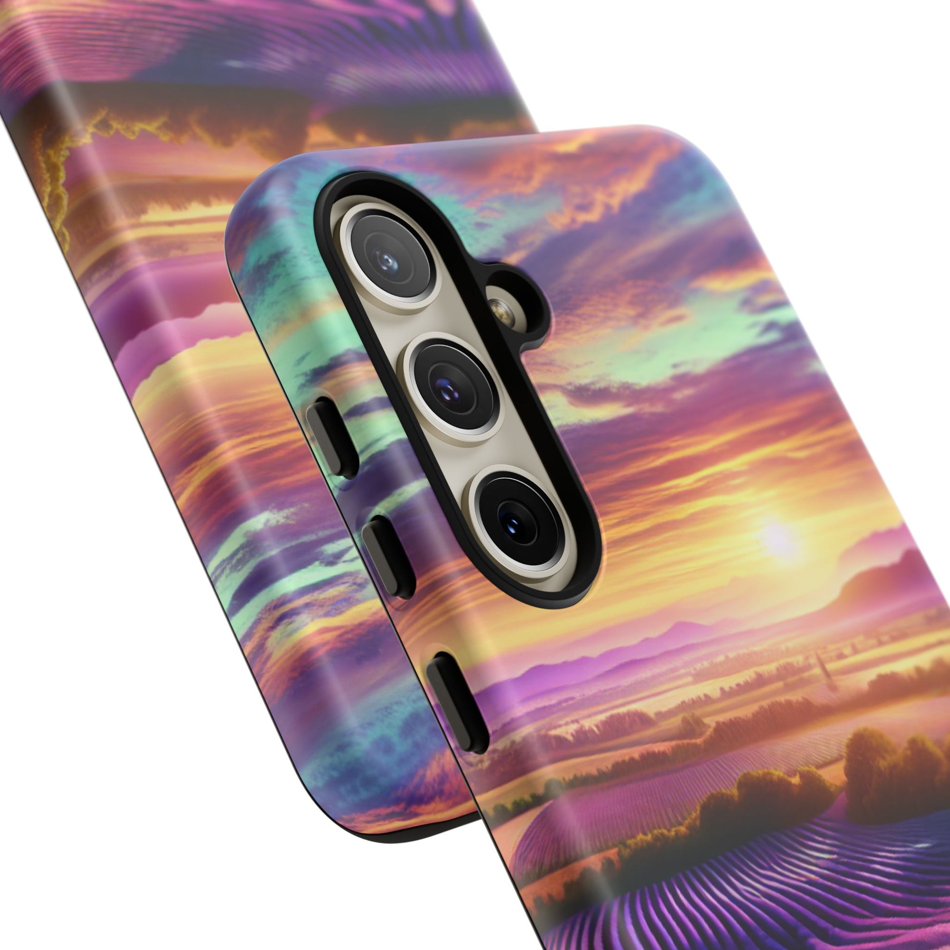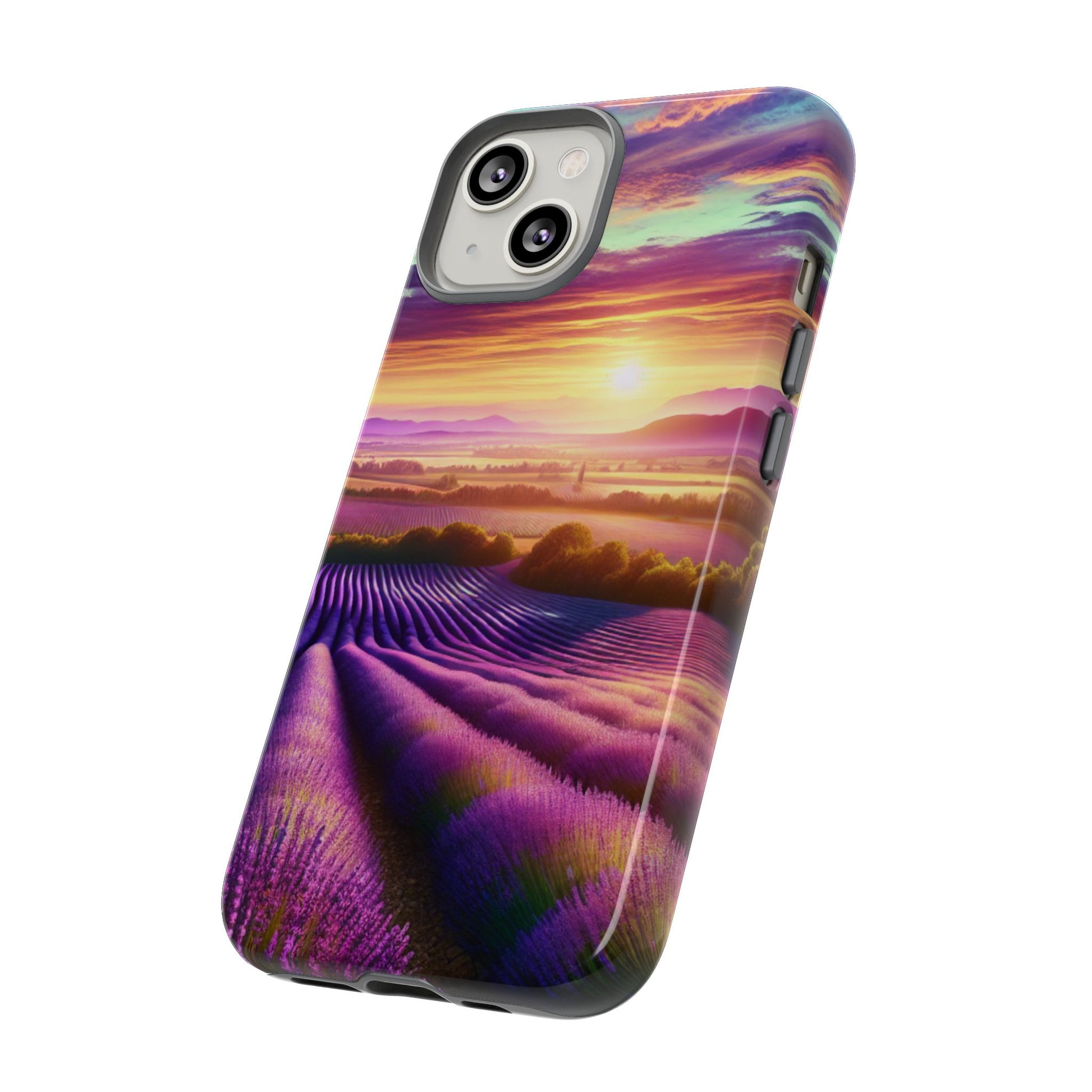Personalize your iPhone, Samsung Galaxy, and Google Pixel devices with premium-quality custom protective phone cases featuring a Lavender Farm design. The tough cases provide extra durability and protection with double layers and clear, open ports for easy charging. Choose between matte or glossy finish to add a unique touch to your phone. Perfect for those looking to protect their phone in style and add a touch of nature to their everyday life. Ideal for gifts on birthdays, holidays, or special occasions.
